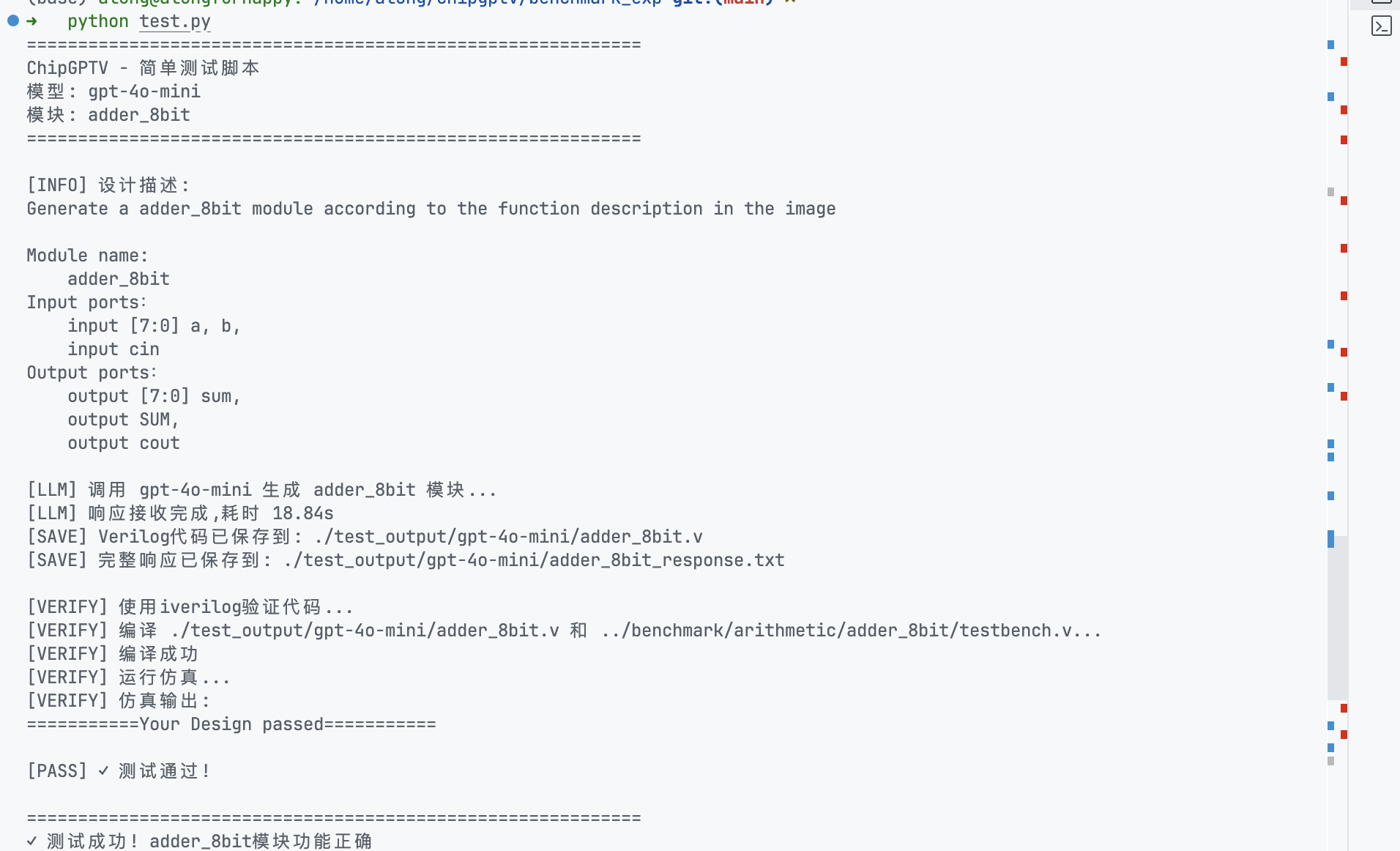 完整的最小实现代码在这里可以看到 https://github.com/Dragonzhoulong/chipgptv/blob/main/benchmark_exp/test.py